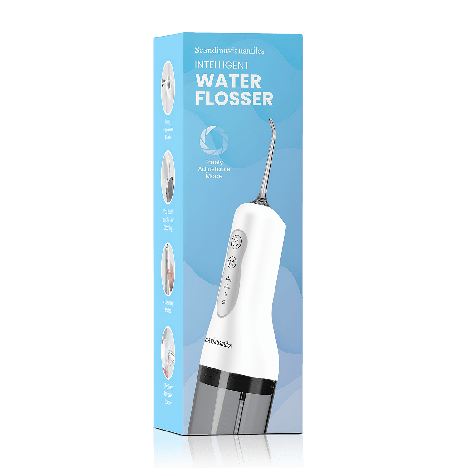 Experience superior dental hygiene with the Scandinaviansmiles Water Flosser®, expertly designed to transform your daily oral routine. Featuring a powerful piston pump that delivers 1100–2200 pulses per minute, it effortlessly removes 99.9% of food debris, plaque, and stains—even from sensitive areas.